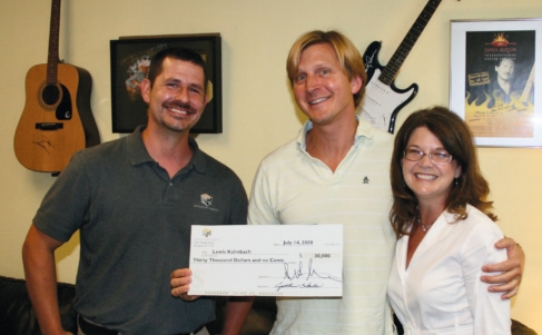 Andy Meadows, the late Lewis Kalmbach (agency founder) and Cindy Smith celebrate the agency’s acquisition by Meadows and Smith in 2002.